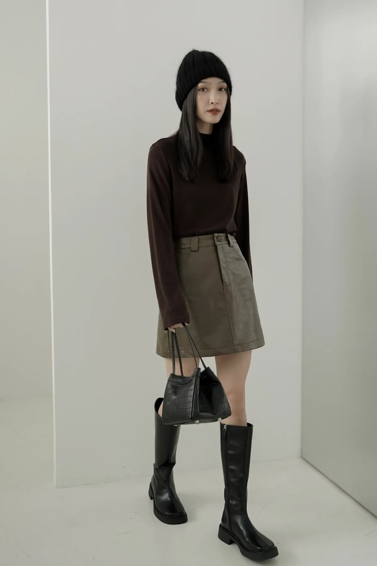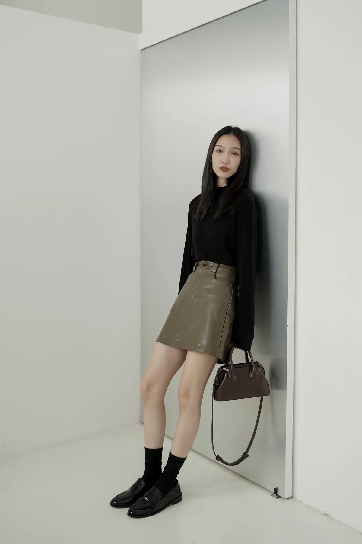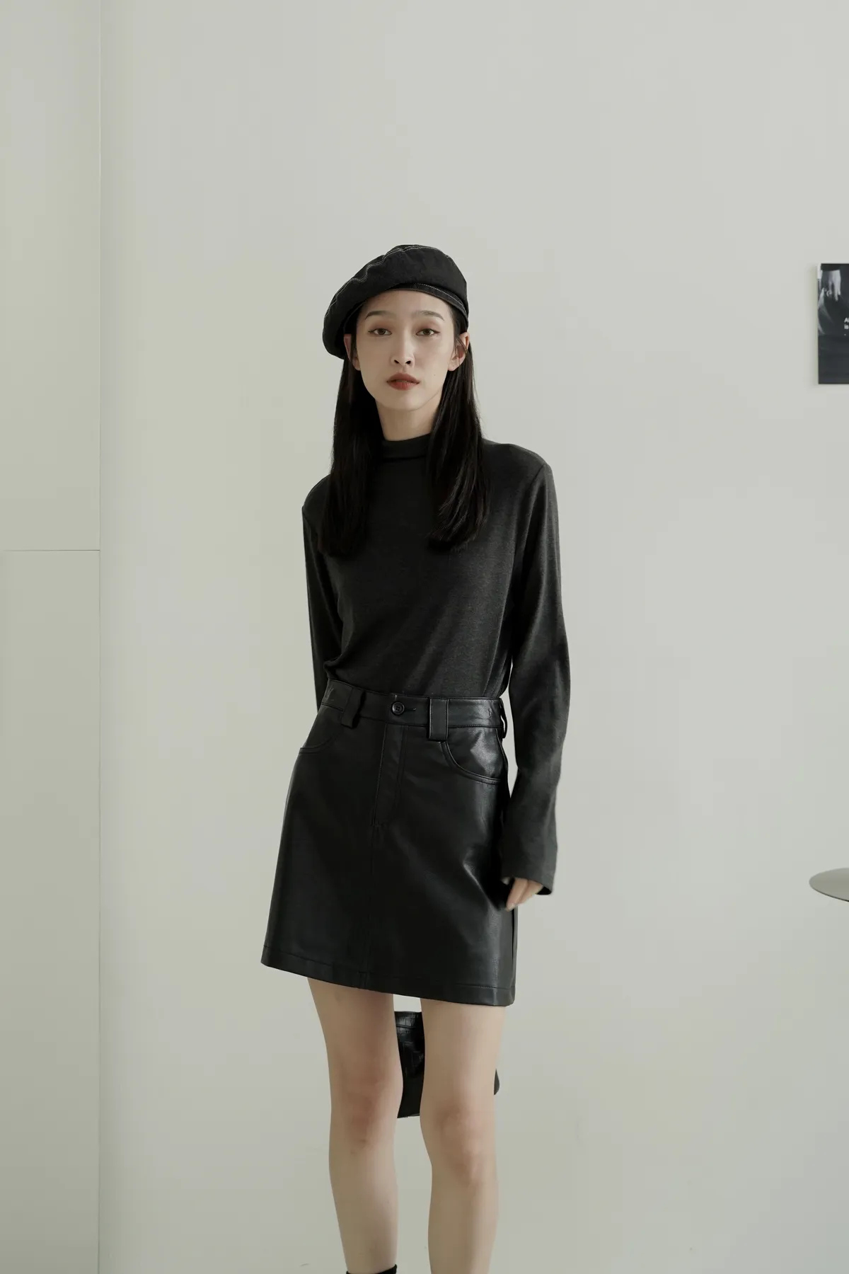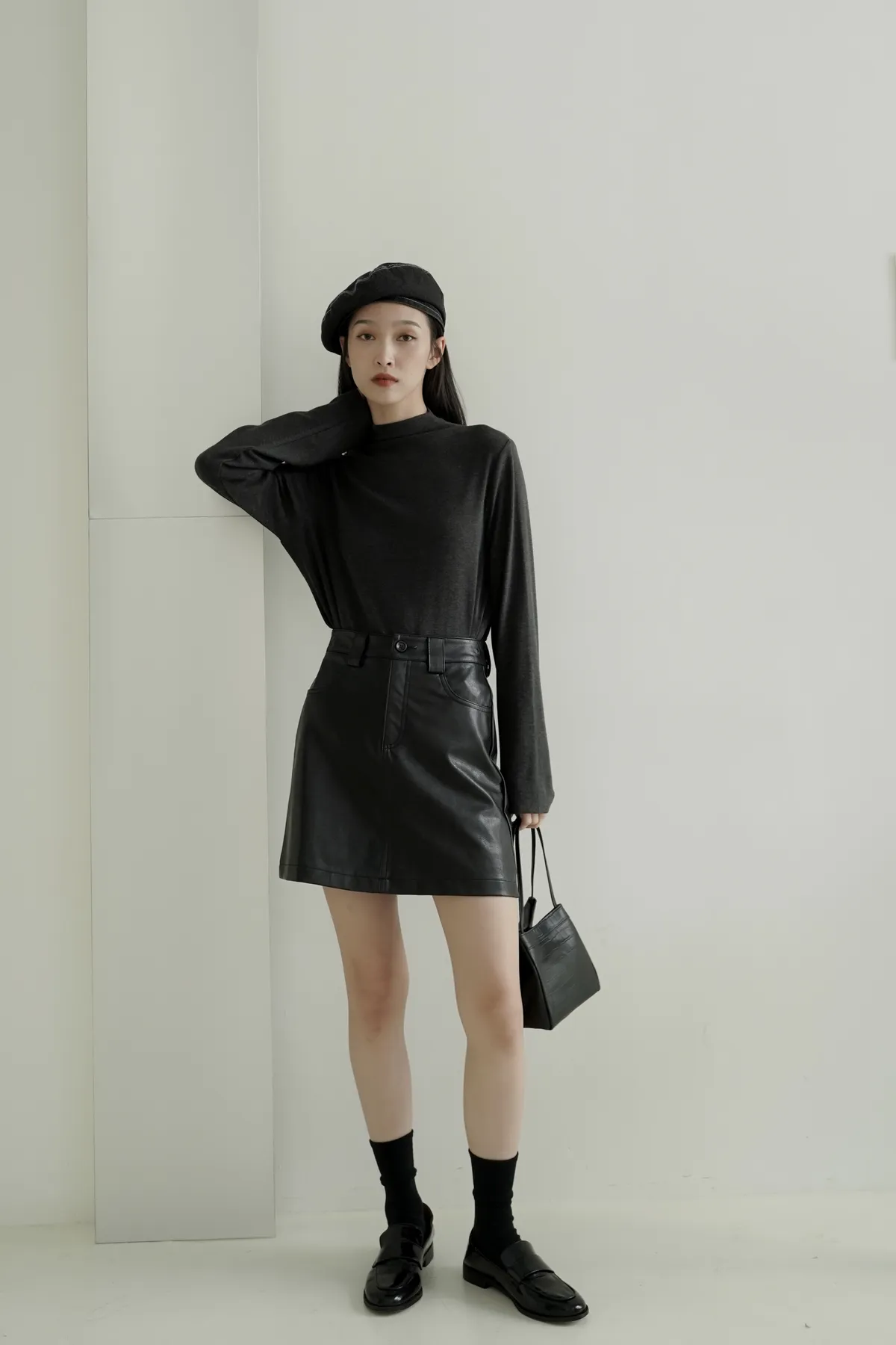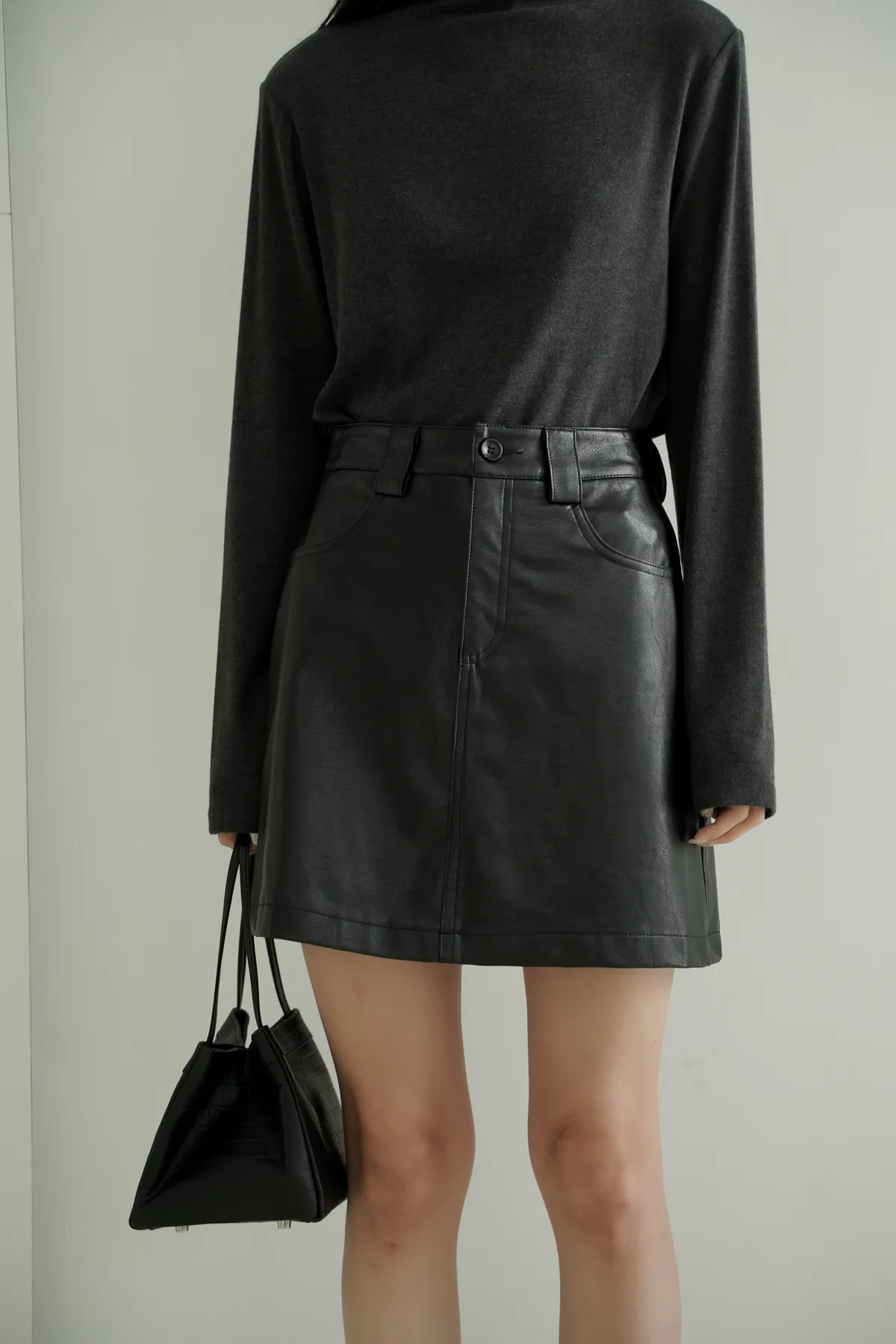 超顯瘦/霧面質感皮短裙 𝟑𝐜𝐨𝐥𝐨𝐫𝐬