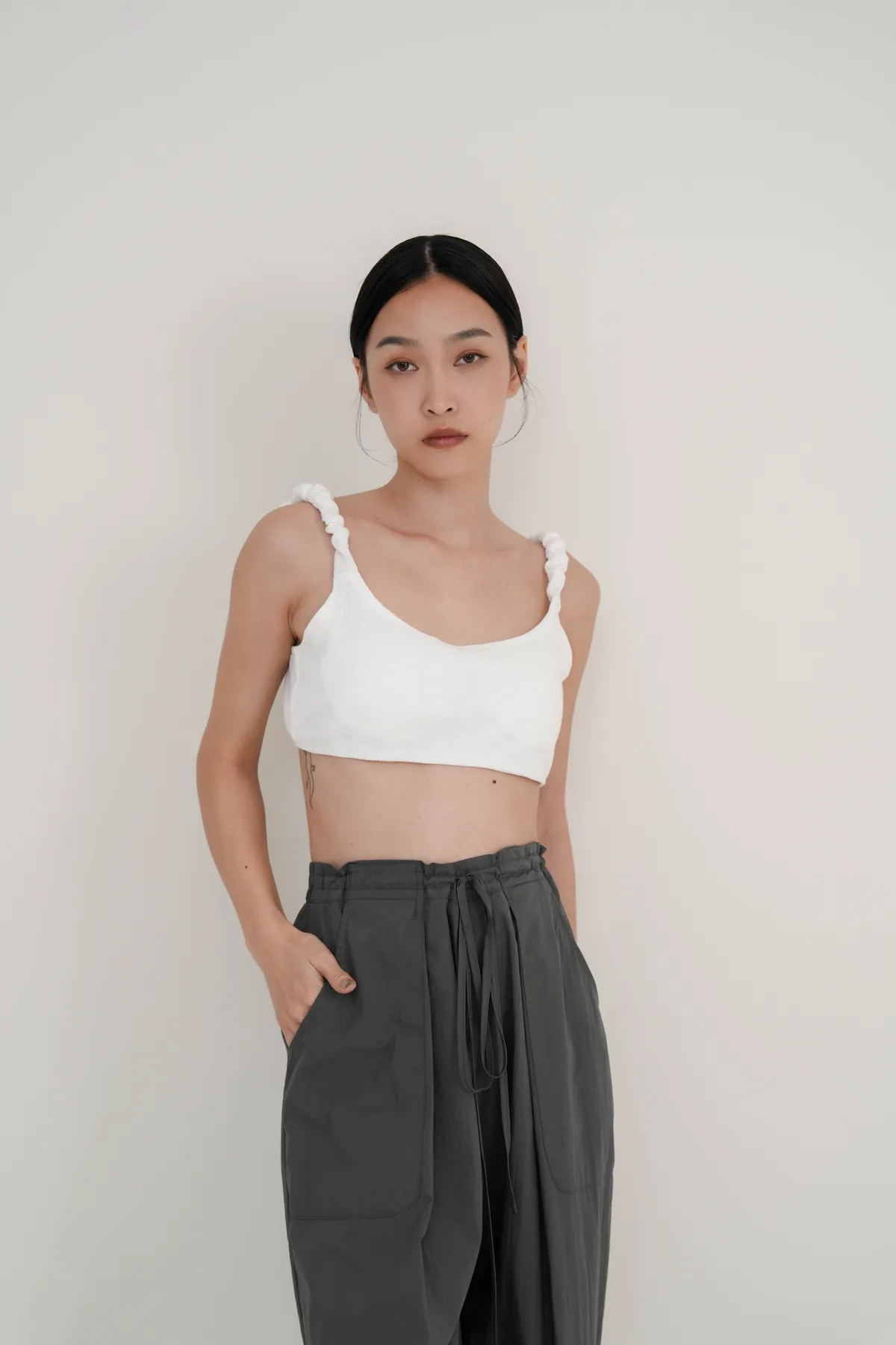 有彈性的抓皺肩帶