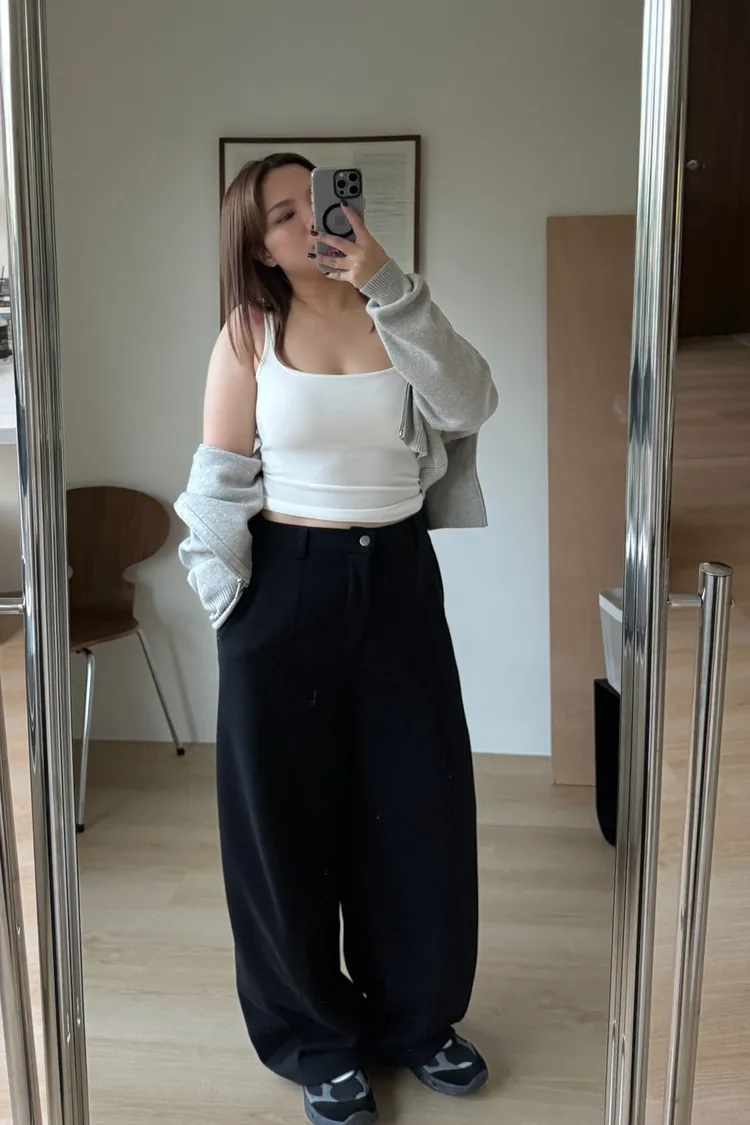 ▪俞臻160cm/51kg (蘋果型肩膀寬) 胸圍83腰圍80臀圍90大腿圍50 💬穿著感受:合身舒適