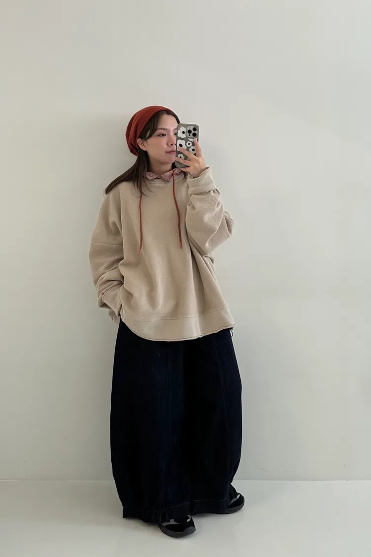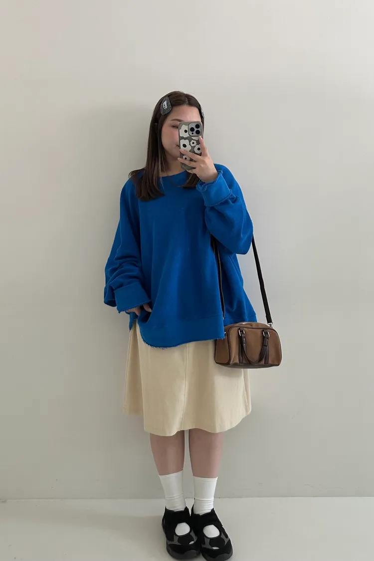 ▪孟郁158cm/56kg (蘋果型) 胸圍87腰圍80臀圍98大腿圍53 💬穿著感受:大件寬鬆