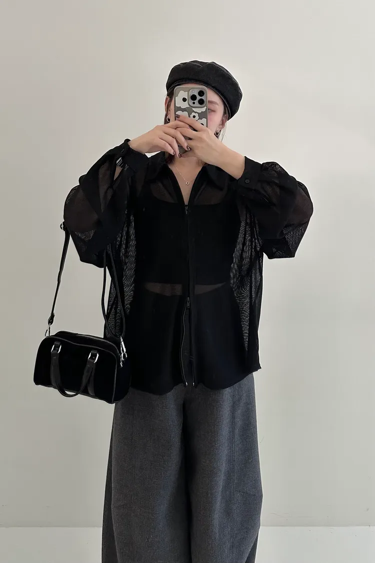柔霧光影/微透感雙拉鍊針織衣 𝟯𝗰𝗼𝗹𝗼𝗿𝘀