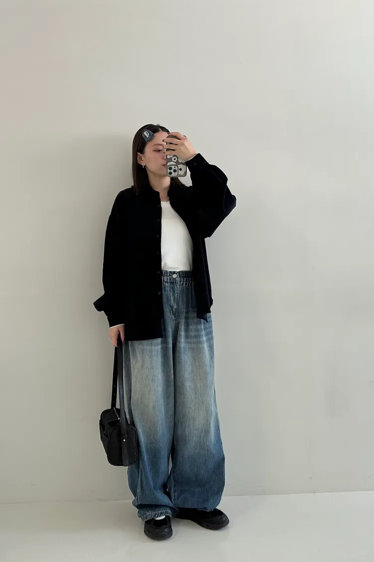 ▪孟郁158cm/56kg (蘋果型) 胸圍87腰圍80臀圍98大腿圍53 💬穿著感受:寬鬆