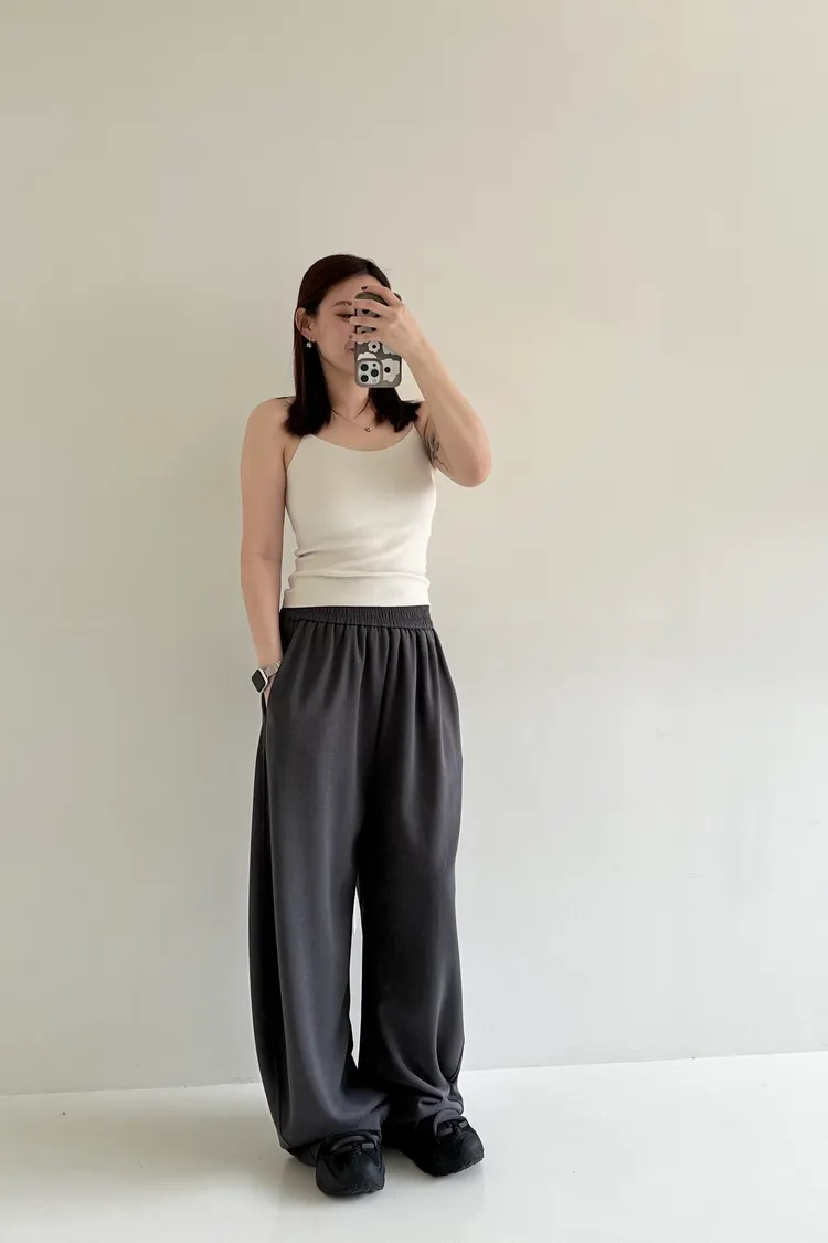鬆緊褲頭不勒肉、微微內收的俐落剪裁