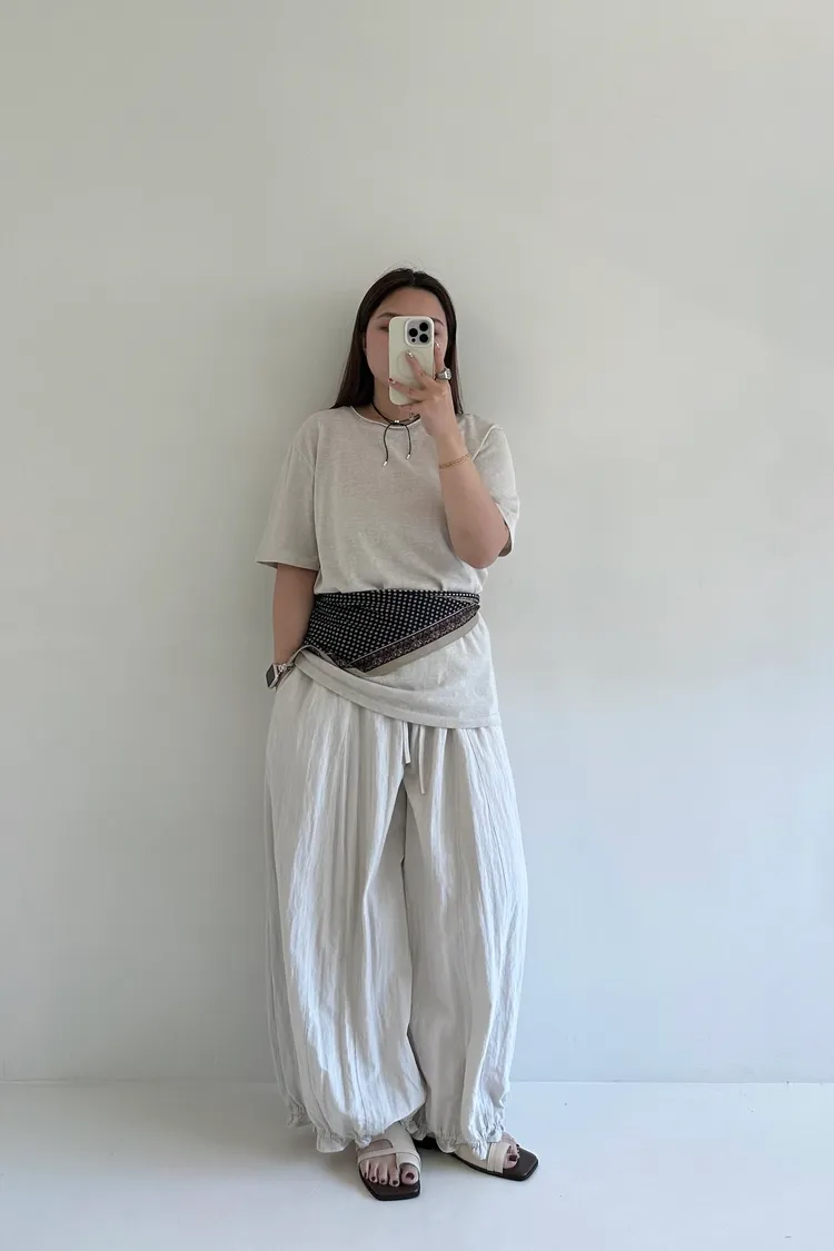 帶有自然紋理感的竹節棉布料,布面會有細緻的肌理變化,也讓整體更有質感