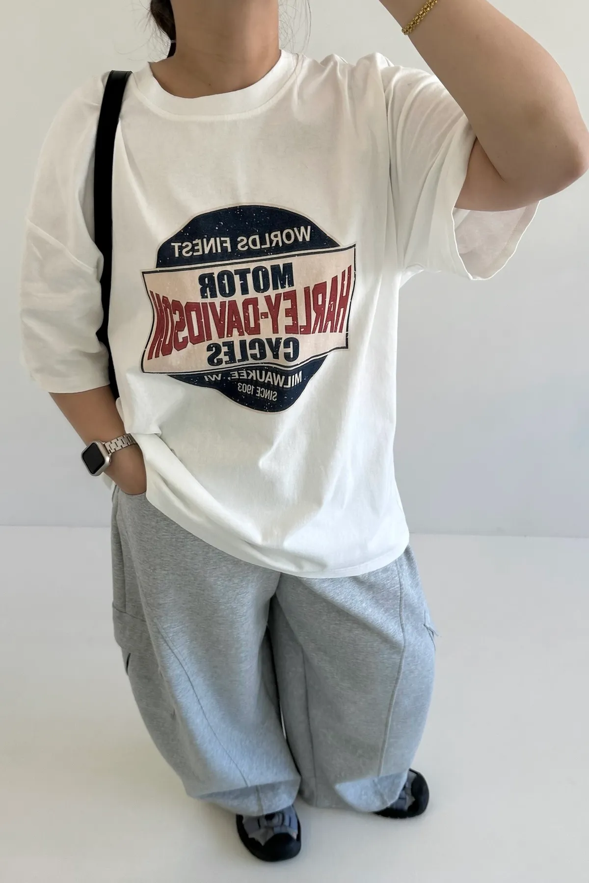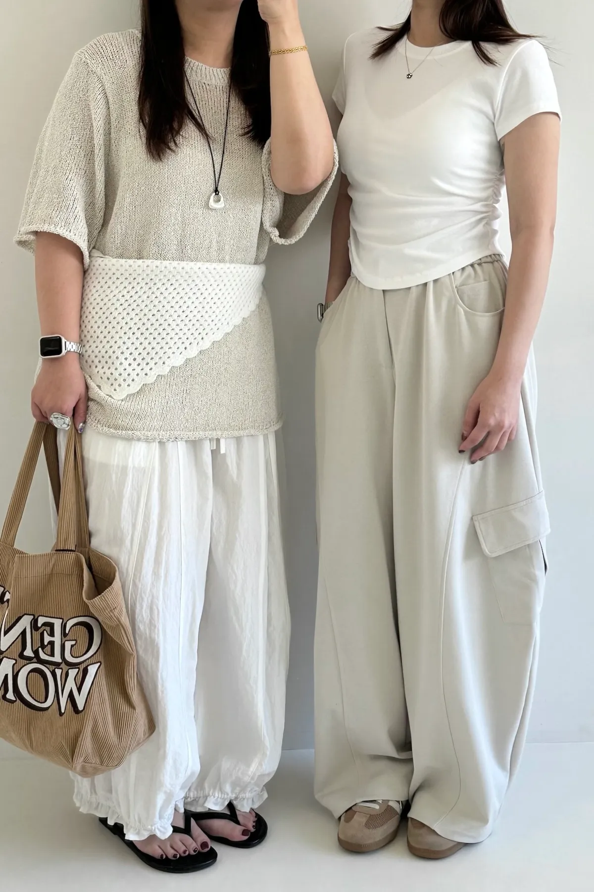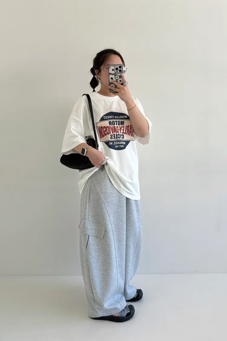 搭配鬆緊褲頭與鈕扣設計,紮衣服也能展現穿搭層次