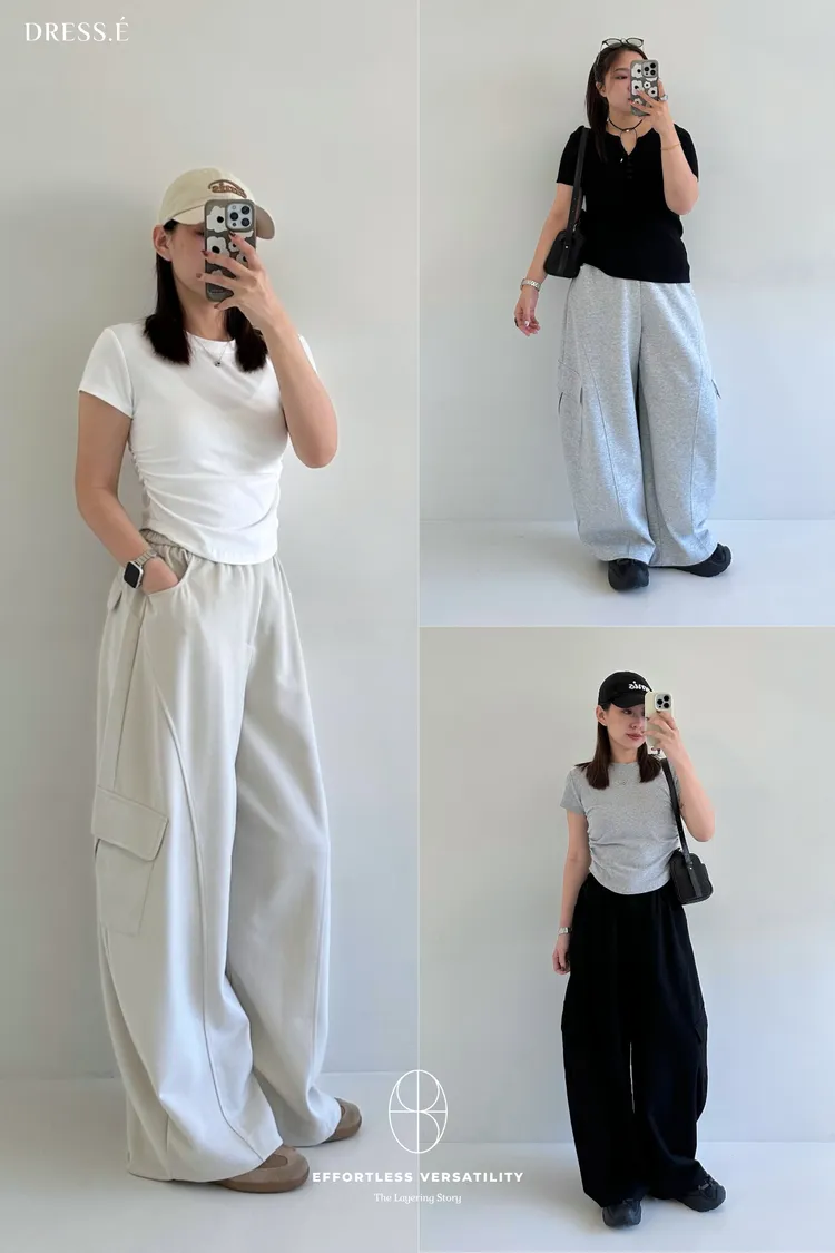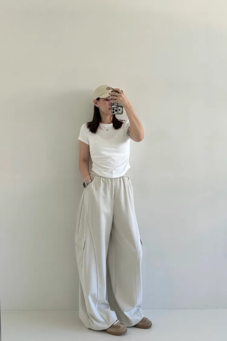 🌟最貼心的隱藏細節在於褲腳抽繩固定於內側,不僅保持視覺俐落,縮緊後也不外露