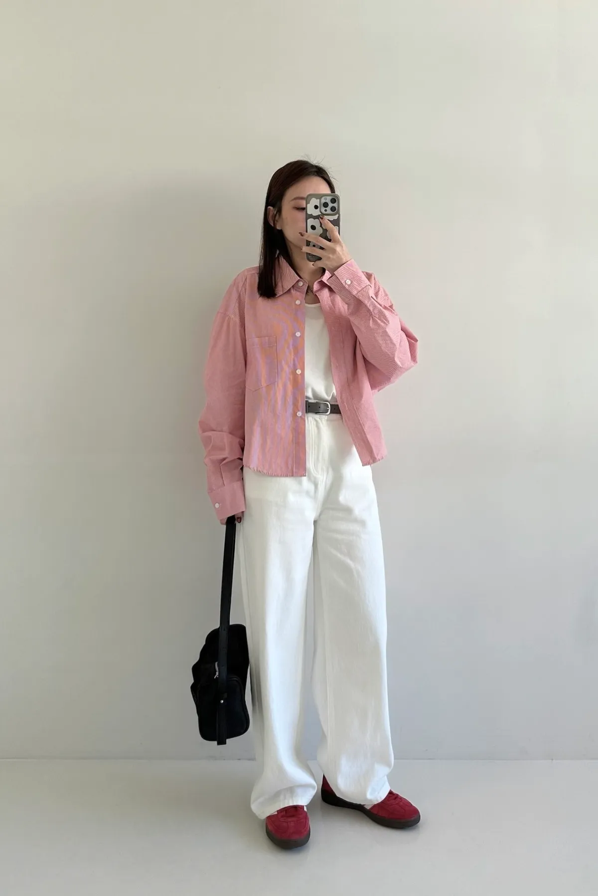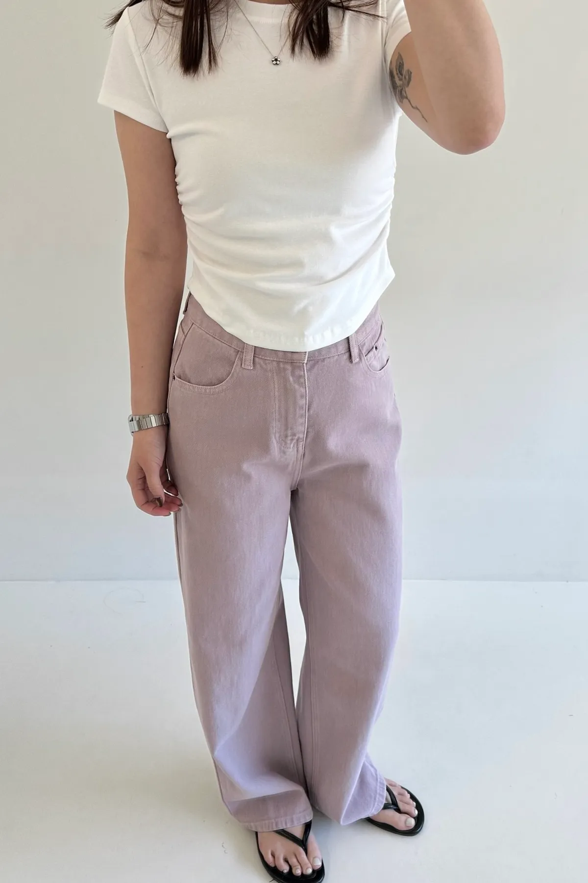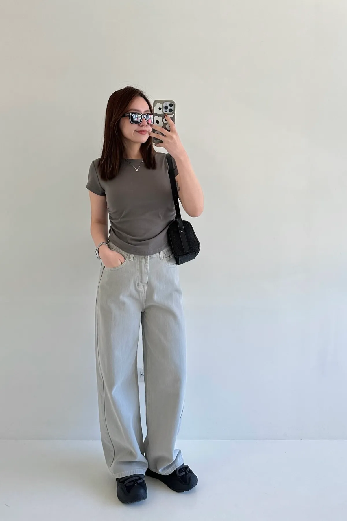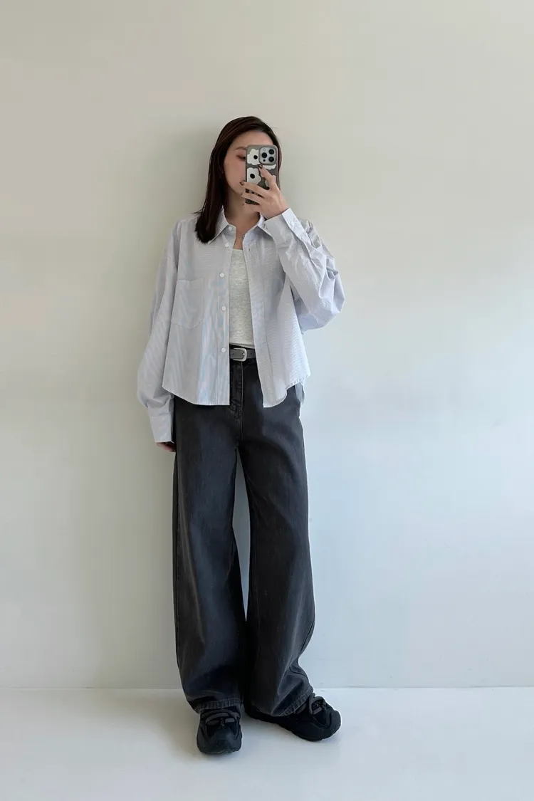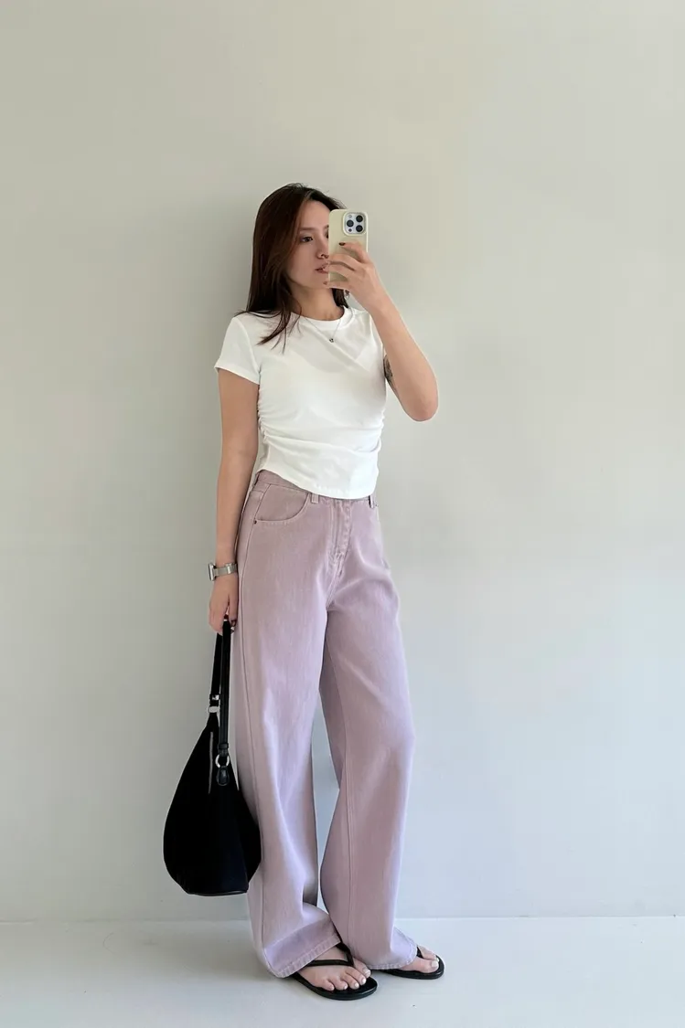 小個女孩看過來!富有挺度的水洗面料,是修飾度很好的直筒寬褲設計